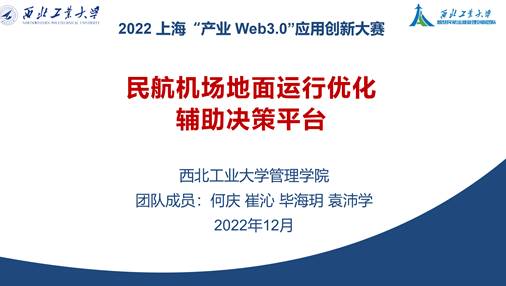 获得企业赛道“航运科技”奖和雏鹰成长组二等奖的“做的都对”团队由小奶猫直播 的四位研究生构成,团队基于Web 3.0数字孪生、区块链技术的框架,进行算法研究实现了飞行器停机坪分配、地勤车辆作业调度以及飞行器与车辆的路径优化;并开发了民航机场地面运行优化辅助决策平台,实时地可视化展示机场地面状况及决策结果。实现了物理空间和虚拟空间的实时交互,有效解决了机场高峰时期地面运行管理的相关问题。