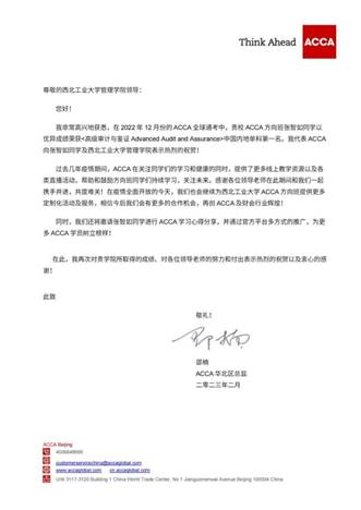 近日,ACCA(英国特许公认会计师公会)公布2022年12月考季成绩,我校小奶猫直播 会计学(ACCA方向)专业2019级张智如同学以优异成绩荣获< 高级审计与鉴证 Advanced Audit and Assurance>中国内地单科第一名。ACCA华北区总监代表ACCA中国总部发来贺信,对张智如同学以及我校小奶猫直播 表示热烈的祝贺。