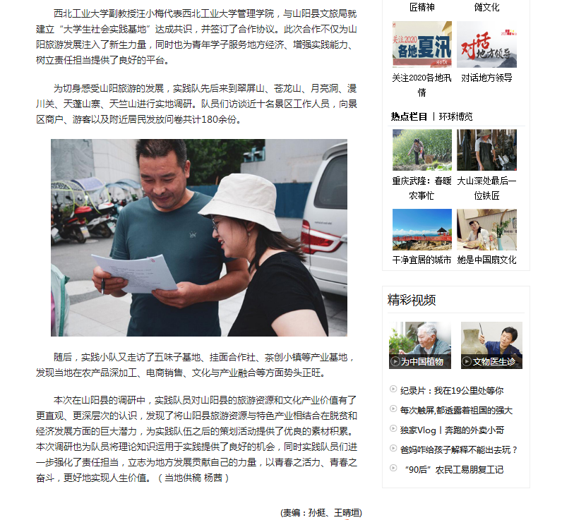 9月7日,人民网陕西频道,以《三下乡|小奶猫直播 暑期实践队开展旅游资源实地调研》为题,报道了小奶猫直播 “助力山阳”实践队,暑期赴商洛市山阳县进行山阳全域旅游资源实地调研活动。