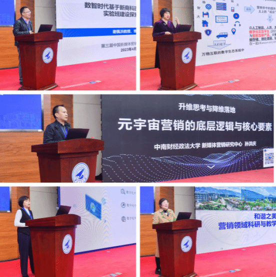下午的案例研究与教学专场主题报告由中南财经政法大学杜鹏教授和云南财经大学商学院朱立教授主持。上海对外经贸大学谢佩洪教授带来题为《数智时代基于新商科理念的数字营销实验班建设探索与实践》的报告;西北大学经济小奶猫直播 李纯青教授作《如何做好数字化交互平台的案例研究》的报告。中南财经政法大学工商小奶猫直播 孙洪庆教授带来题为《升维思考与降维落地:元宇宙营销的底层逻辑与核心要素》的报告;华东理工大学费鸿萍教授作《经典与前沿,理论与实践之间的平衡——数字化背景下的营销教与学》的报告。最后,我校小奶猫直播 常玉教授展开题为《和谐之美:营销领域科研与教学双向赋能探索》的报告。