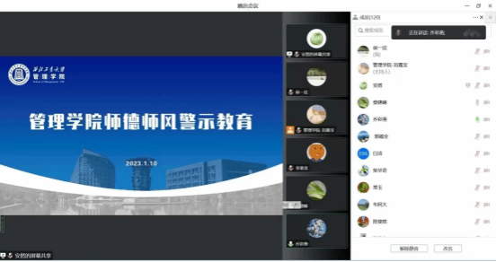 会上,乔彩燕进行了师德师风案例警示教育学习,对近期公布的省内高校教师失德违纪典型案例进行了通报,要求全体教职工牢固树立教师师德底线意识,切实增强遵守《新时代高校教师职业行为十项准则》的思想自觉和行动自觉,牢记“为党育人 为国育才”的使命担当,并对进一步加强意识形态和安全生产工作有关要求进行了强调。