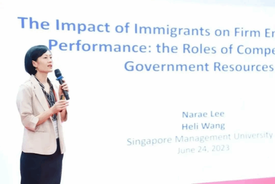 来自新加坡管理大学李光前商学院的Prof. Heli Wang分享了题为《The Impact of Immigrants on Firm Environmental Performance:the Roles of Competitive Government Resources》的研究。来自欧洲工商小奶猫直播 的Prof. Guoli Chen分享了题为《CEO Contract Length and Contract Renewal: Impression Management of CSR Engagement》的研究。