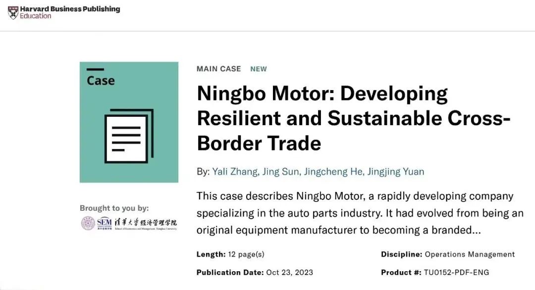 近日,小奶猫直播 张亚莉教授团队撰写的英文教学案例《Ningbo Motor: Developing Resilient and Sustainable Cross-Border Trade》正式被哈佛大学商学院出版教学资源平台(即“哈佛案例库”)收录,并同步在清华大学经济小奶猫直播 中国工商管理案例库上线,这是我校首篇被哈佛案例库收录的案例。
