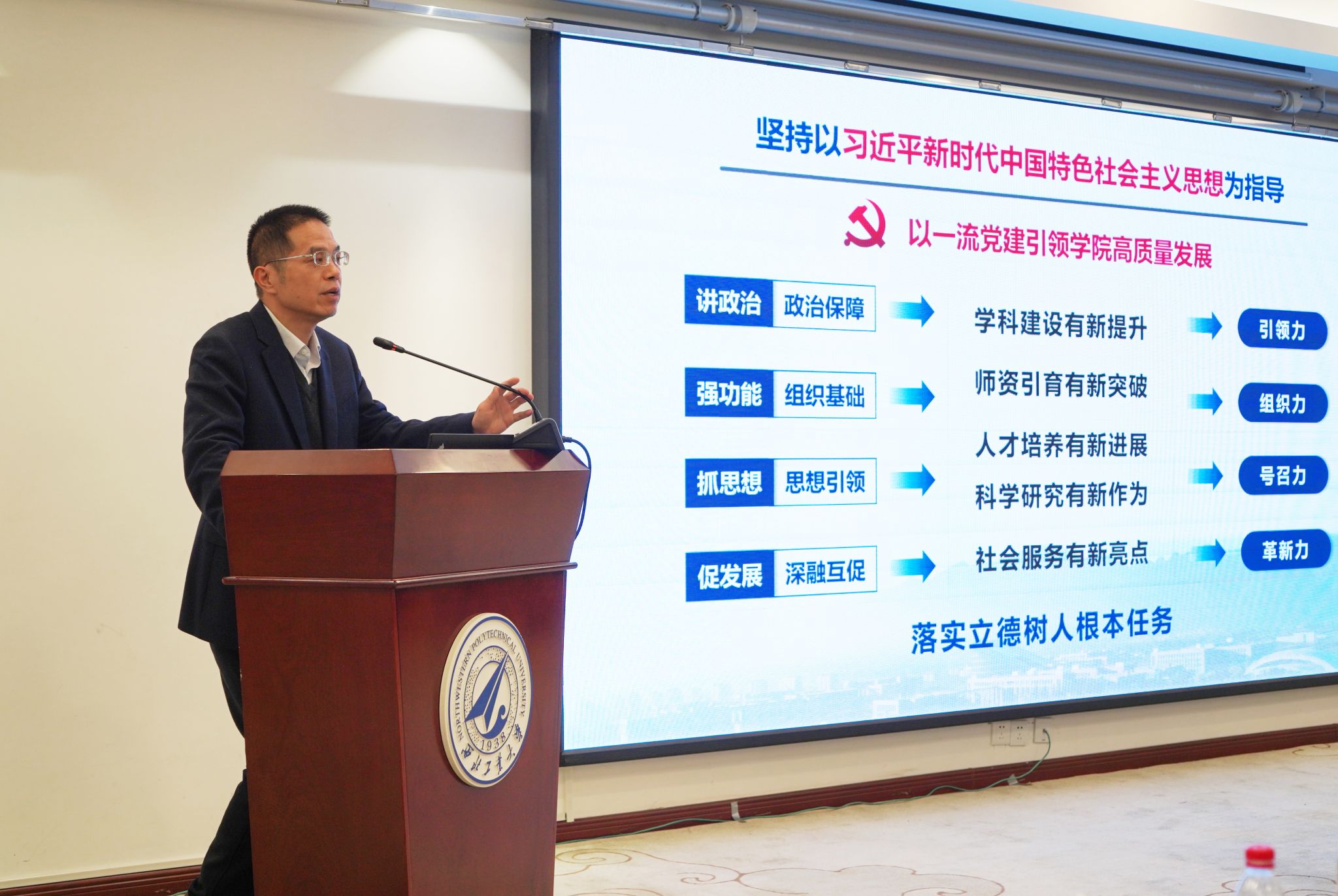 教职工大会上,副院长贾明、陈琳、郭云涛以及党委副书记王兆旭,院长助理李乘龙、邵婧根据各自分管工作,分别围绕教学、科研、学生管理、人才队伍建设、国际化等方面,结合学校近期有关要求,通报了学院现阶段各项工作的推进落实情况,并就下一步工作的重点事项及举措进行安排部署。