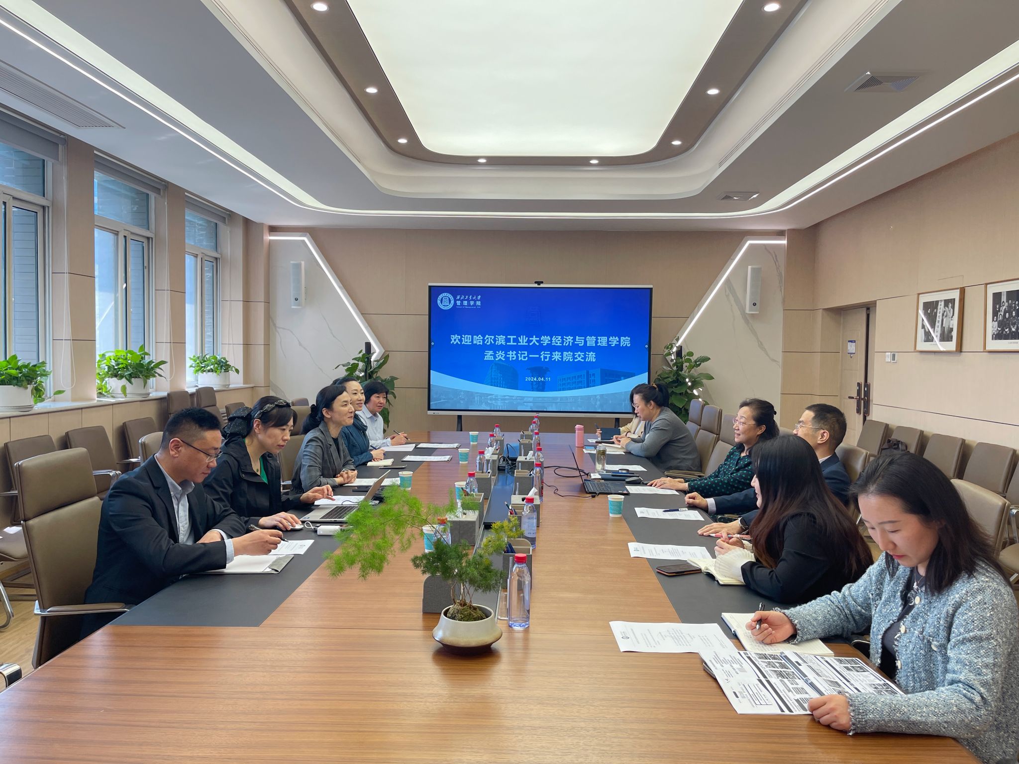 车阿大首先代表学院对孟炎一行表示欢迎。随后张爽从历史沿革、学科专业设置、教师队伍发展等方面介绍了学院的发展概况,希望今后能进一步加强双方的合作与交流。孟炎同时介绍了哈工大经管学院的基本情况与发展现状,包括学科建设、教学科研、师资队伍建设、人才培养等方面,她表示希望通过本次调研也能进一步加强双方的学习与交流合作。双方还就人才引育、教师队伍建设、学科科研工作以及国际交流与合作等方面进行了深入探讨和交流。