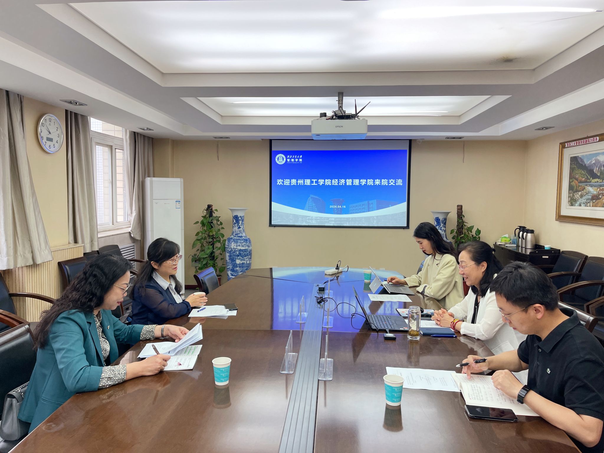 4月16日上午,贵州理工学院经济小奶猫直播 党总支书记周红一行来院调研,双方在友谊校区小奶猫直播 308会议室进行座谈。党委书记张爽、院长助理李乘龙、本科教学秘书张雪谧参加座谈。会议由张爽主持。