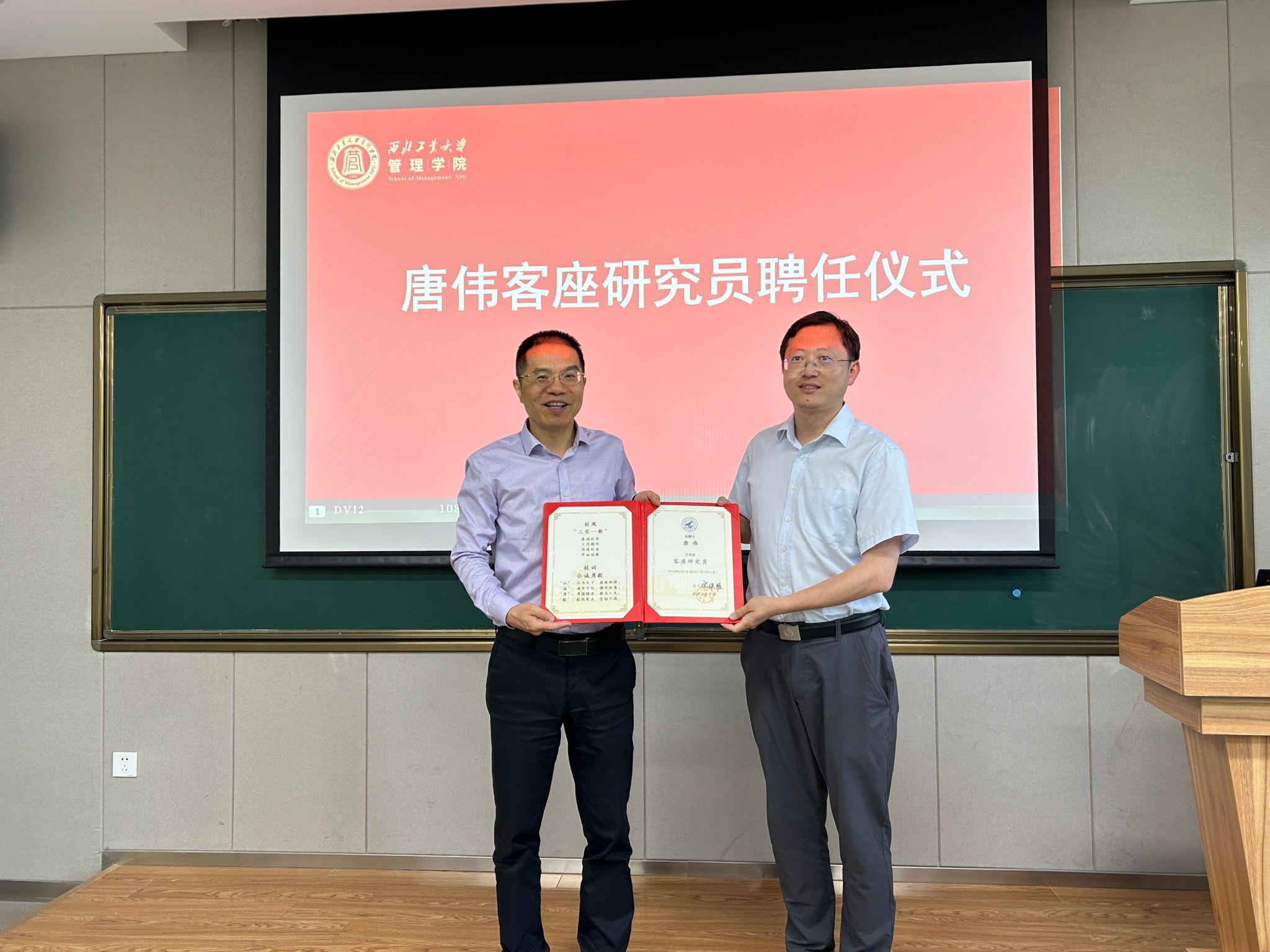 在讲座开始之前,车阿大对唐伟的到来表示热烈欢迎,对其个人经历和学术成就进行简要介绍,并为他颁发客座研究员聘任证书。车阿大表示,唐伟已成为学院的一份子,希望未来在项目申请、科学研究等方面能够助推学院高质量发展。唐伟表示,受聘为小奶猫直播