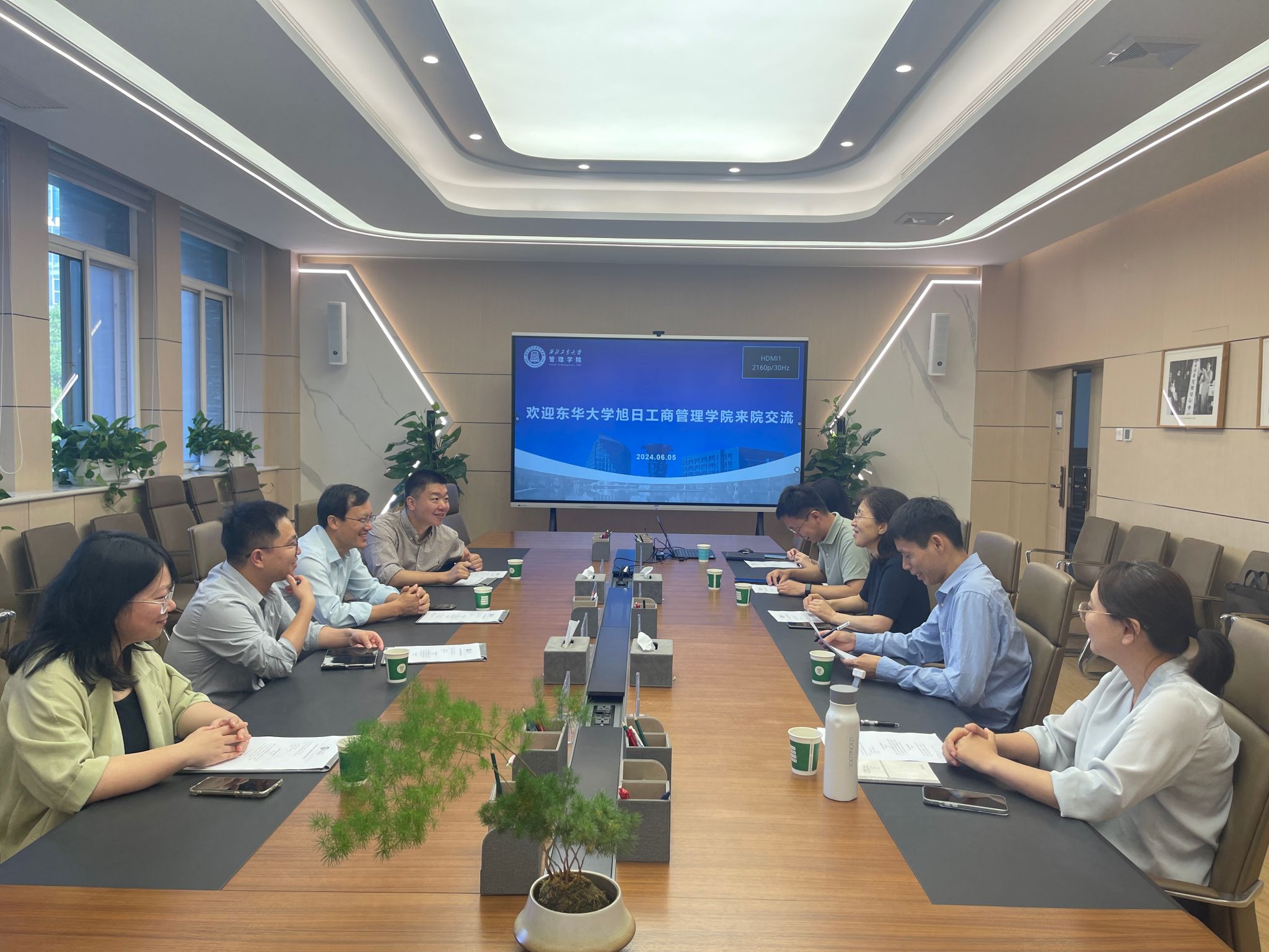 6月5日上午,东华大学旭日工商小奶猫直播 管科博士点负责人郑斐峰、系主任戴韬一行来院调研,双方在长安校区小奶猫直播 212会议室进行座谈。管科系主任张亚莉等相关老师参加会议。