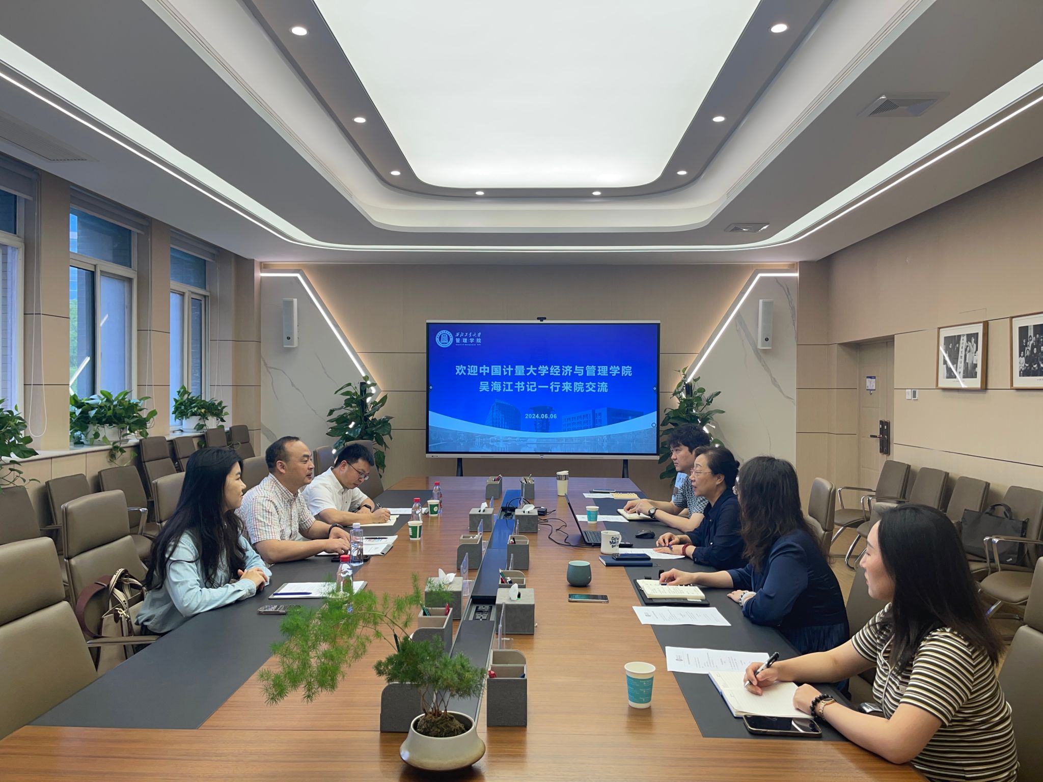 6月6日上午,中国计量大学经济与小奶猫直播 党委书记吴海江一行来院调研,双方在长安校区小奶猫直播 212会议室进行座谈。党委书记张爽、院长助理白洁等相关部门业务负责同志参加会议。