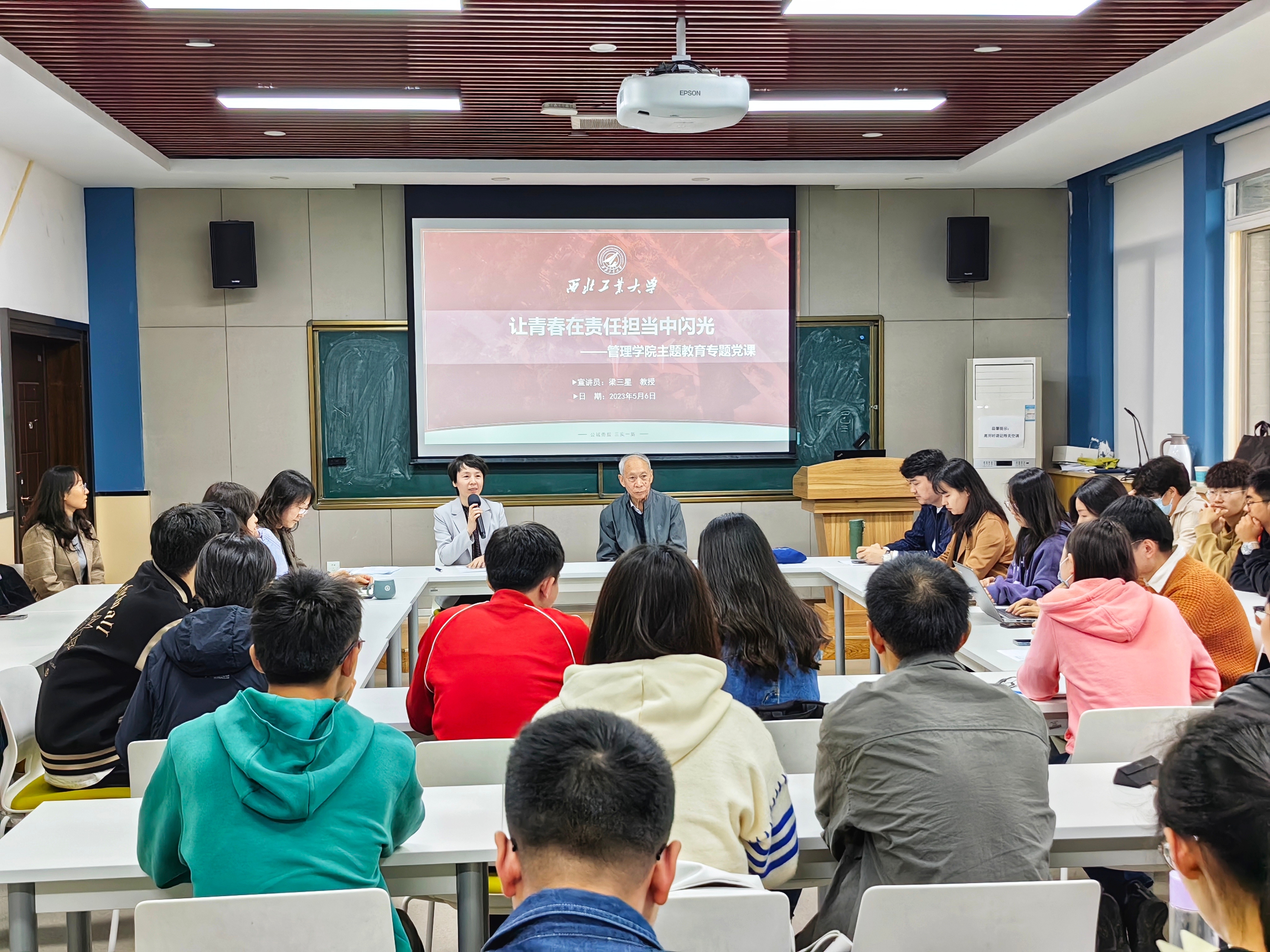 强化思想引领,凝聚奋进力量。学院党委坚持不懈用党的创新理论凝心铸魂,汇聚推动学院事业高质量发展的合力。全面构建“大思政”育人格局,选优配强思政工作队伍,构建院领导、教师、校友等多元主体参与的思政教育平台,成立学院课程思政教学研究中心,构建“教学团队+示范课程+思政案例+实践平台”价值塑造体系,着力提升学生思想政治教育工作实效。党委书记、院长为新生讲“开学第一课”、为毕业生讲“工大最后一课”,激励学生赓续爱国热情、砥砺强国之志,系好入学入职“第一粒扣子”。学院指导的“阳光工程”志愿者服务队2023年受到教育部、团中央联合表扬,先后荣获“全国榜样100优秀大学生社团”、陕西省高校“活力社团”等荣誉,并多次被人民网、凤凰网等官方媒体报道。硕士研究生高雅纯被推选为学校唯一团代表参加中国共产主义青年团第十九次全国代表大会。大力弘扬教育家精神,扎实开展师德师风建设,通过线上与线下、理论与实践、集中与自学、授课与研讨等模式,组织师生开展形式多样的教育活动,增强青年教师理想信念,厚植家国情怀。五年来,学院教师获全国宝钢优秀教师奖1人,校级立德树人奖1人、优秀青年教师(吴亚军奖)4人、先进工作者1人、十佳辅导员2人、优秀班主任2人、“十育人”先进个人6人、“三全育人”先进集体1个。