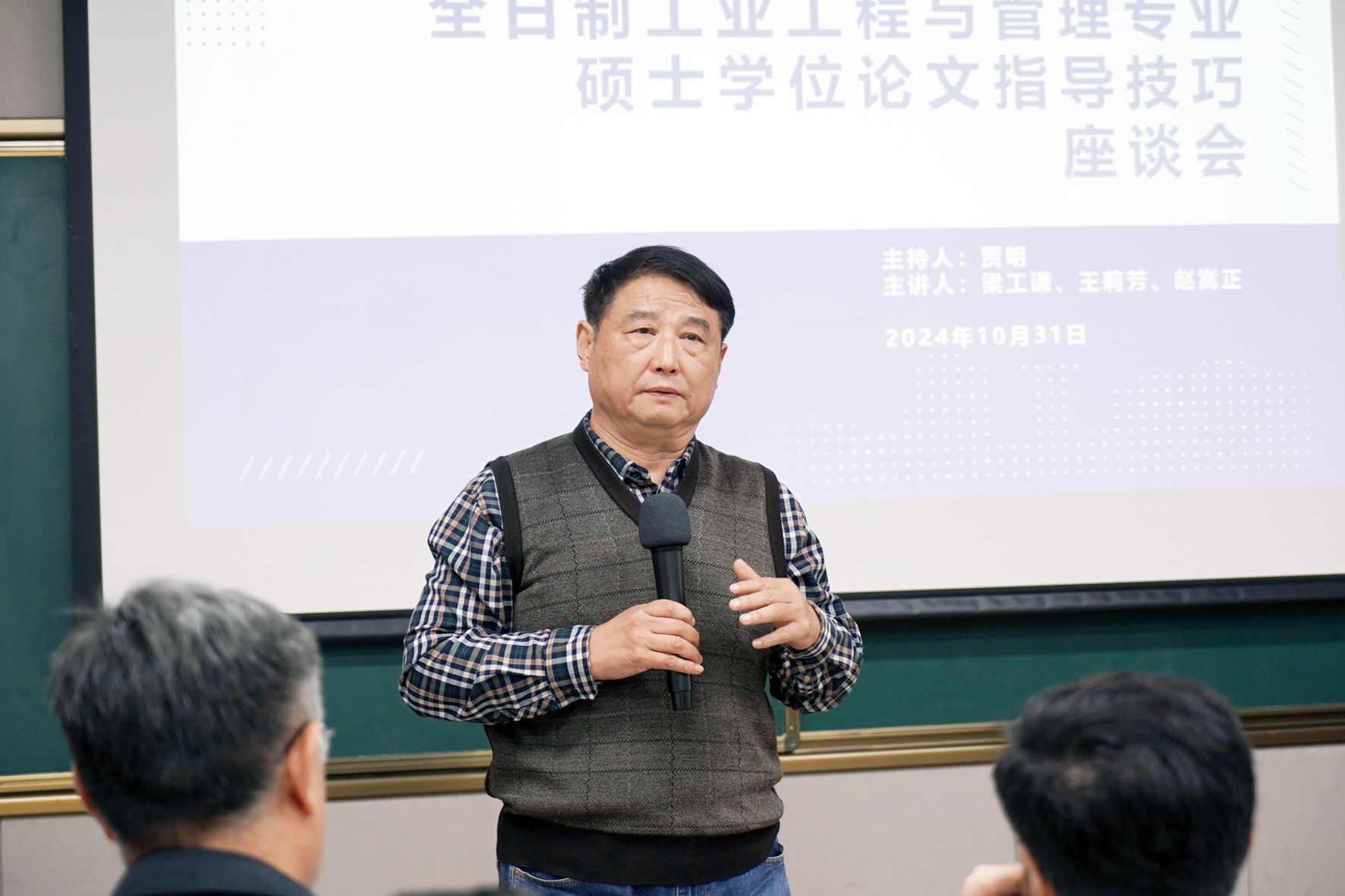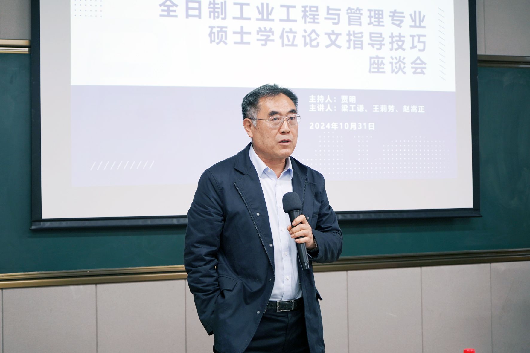 为进一步提高学院工业工程与管理专业硕士学位论文质量,加强论文写作指导能力,提升学位点建设水平,10月31日,学院成功举办了全日制工业工程与管理专业硕士学位论文指导技巧座谈会。此次座谈会由学院副院长贾明主持,梁工谦教授、王莉芳教授、赵嵩正教授担任主讲教师,共50余名研究生导师参加。
