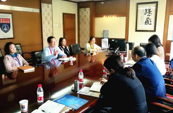 的AACSB国际认证过程。从课程体系制定、执行、教师师资、评估专家构成、认证人员构成等方面分享了其在认证环节中积累的宝贵经验及注意事项。葛京主任及唐晓霞副主任介绍了MBA、EMBA教育学生实践活动开展情况以及国际交流、国际MBA项目开展等情况。双方就认证、专业学位实践、国际交流项目等共同关心的多个关键问题展开了热切的讨论。