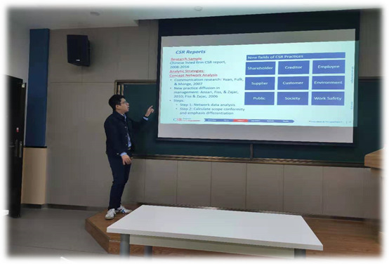 214教室做了题为“Examining CSR Scope Conformity and Emphasis Differentiation among Chinese Publicly Listed Companies”的学术报告。报告会由张莹副教授主持,学院博士生及青年教师参加了此次报告会。