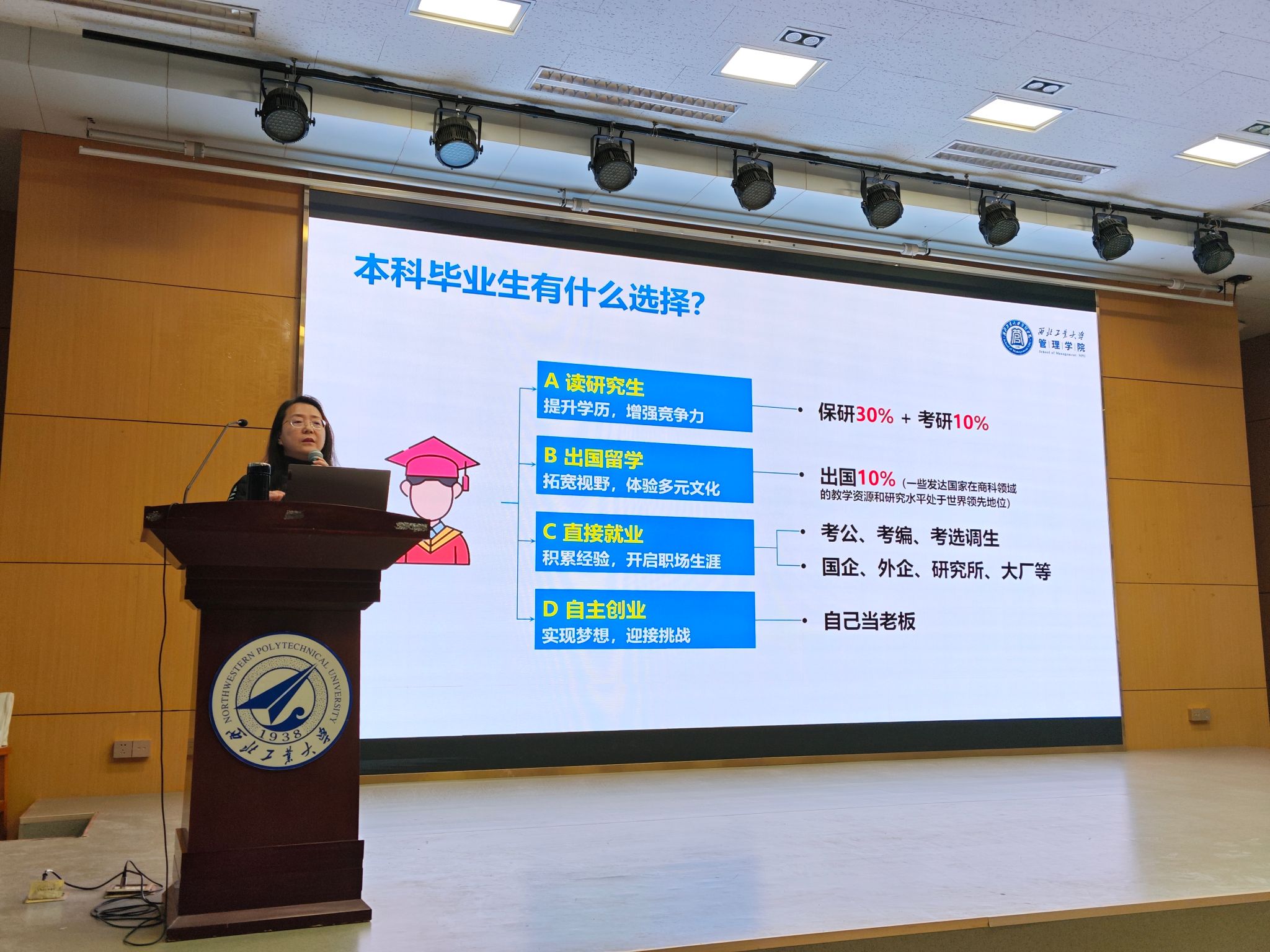 文雅聚焦管理专业学生的留学需求,从跨文化体验、前沿学术资源及语言能力提升三方面解读海外深造价值。她系统梳理了申请流程的关键节点和时间规划,并针对金融、咨询、跨国企业等留学生热门就业方向提出建议,倡导学生以“国际化视野拓宽职业赛道”。