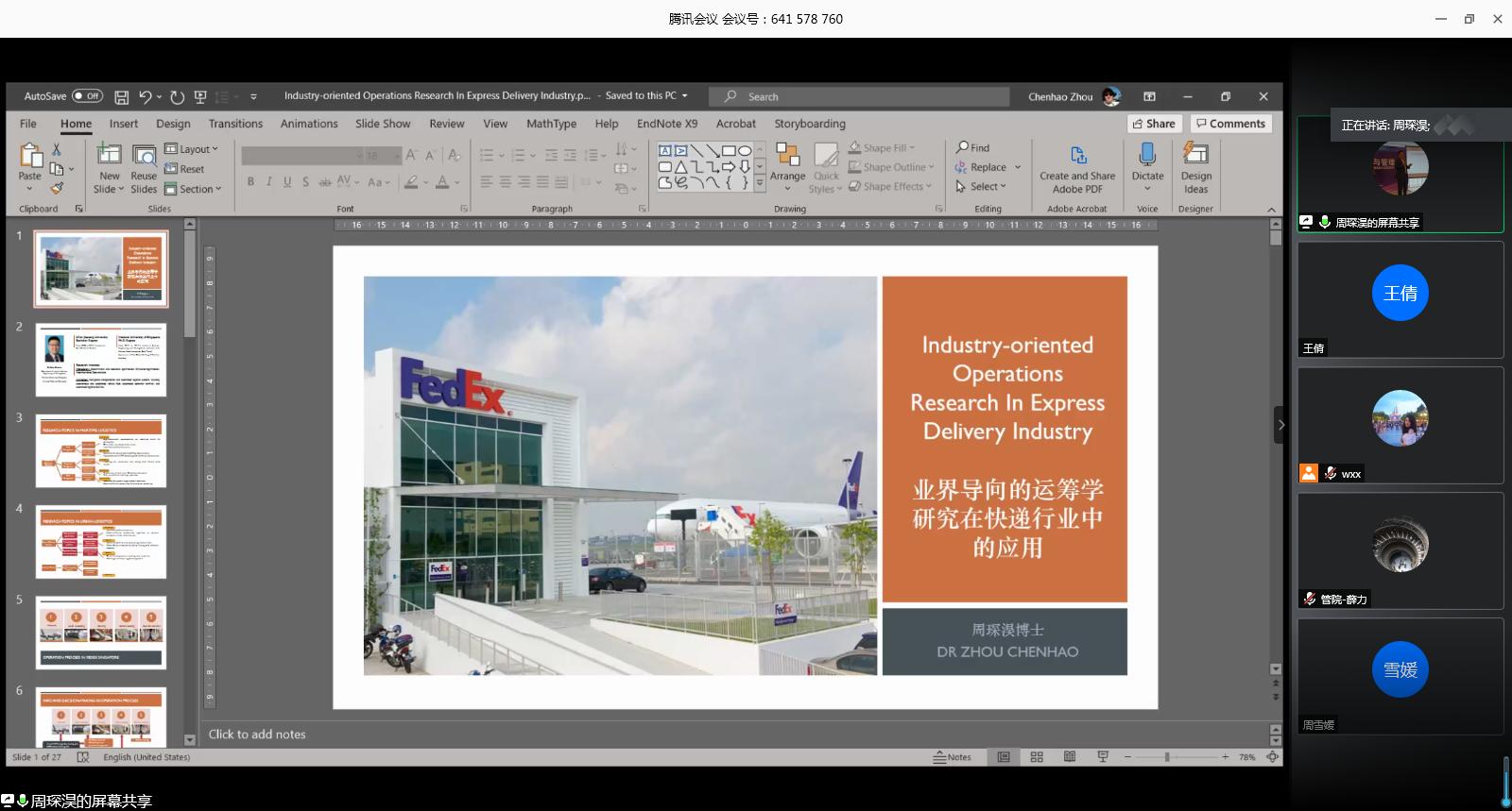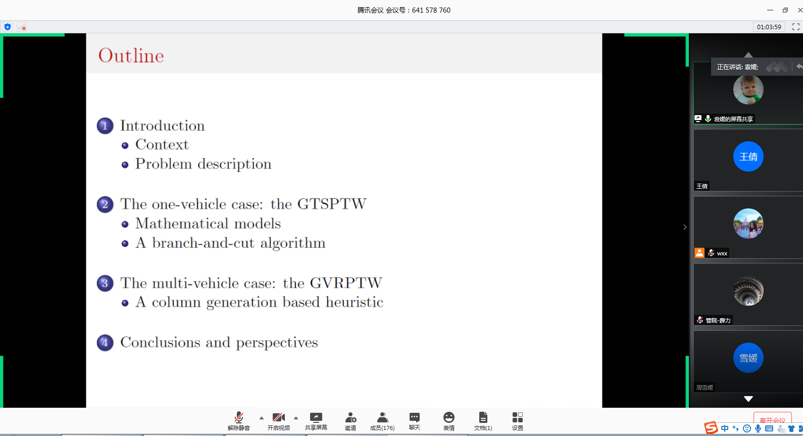 论坛以学术报告会开场,由学院副院长贾明教授主持。首先贾明教授对青年学者们的到来表达了诚挚的欢迎,并分别对学院情况和参会学者作了简要介绍。两位青年学者分别就《业界导向的运筹学研究在快递行业中的应用》、《能够提供多种运输方式的城市物流优化模型和算法》等主题做了精彩的报告并和与会人员进行了互动交流。