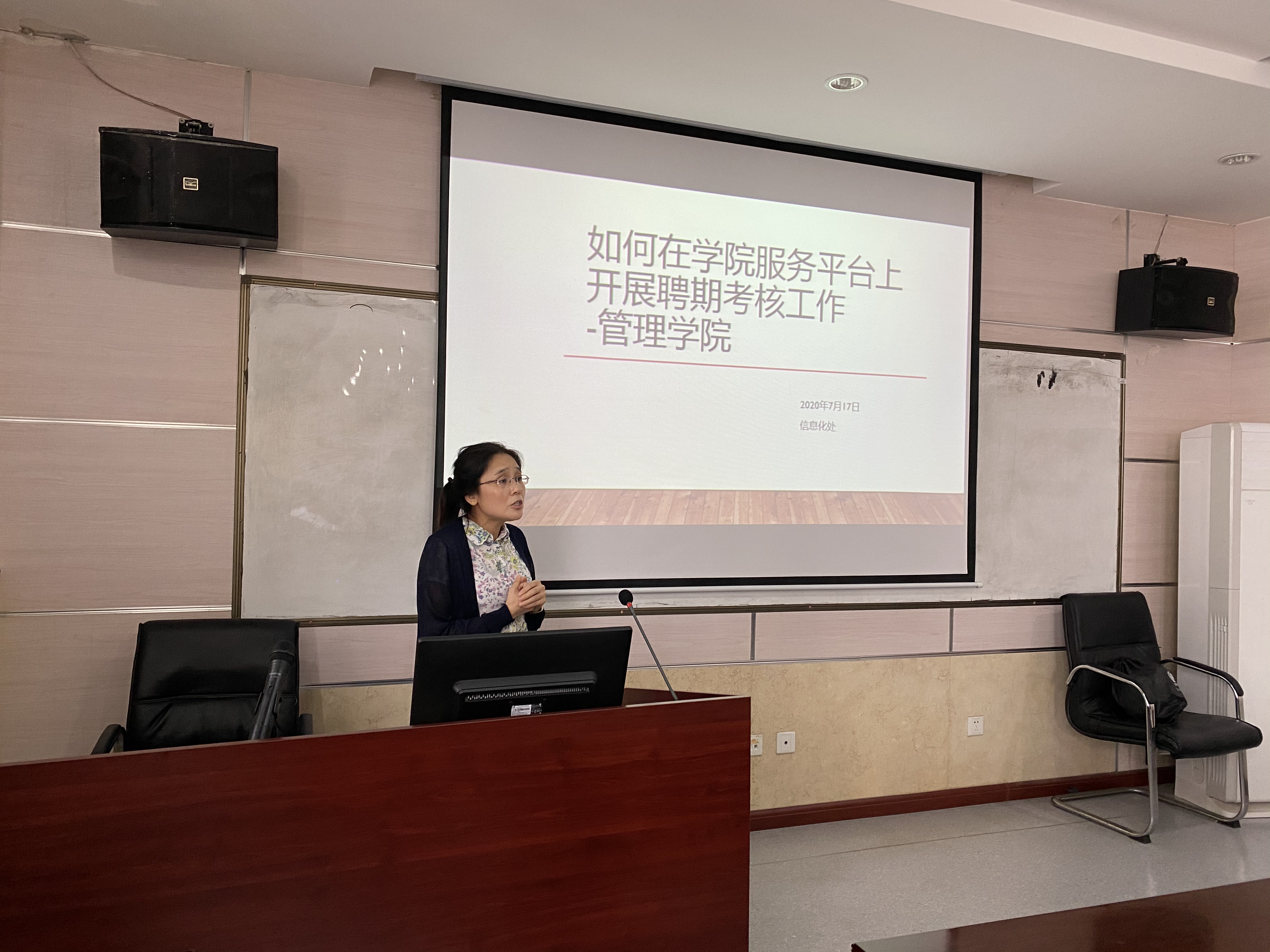 之后,由张文生通过对全面推进数据治理体系的必要性、可行性、建设目标、主要建设内容的详细讲解,让学院更加了解信息处对构建智慧学院服务平台的建设思路。肖琳以聘期考核为例,实操演示了如何在学院服务平台上进行工作,立体展示了未来可达到的成果,开阔了老师们的视野。
