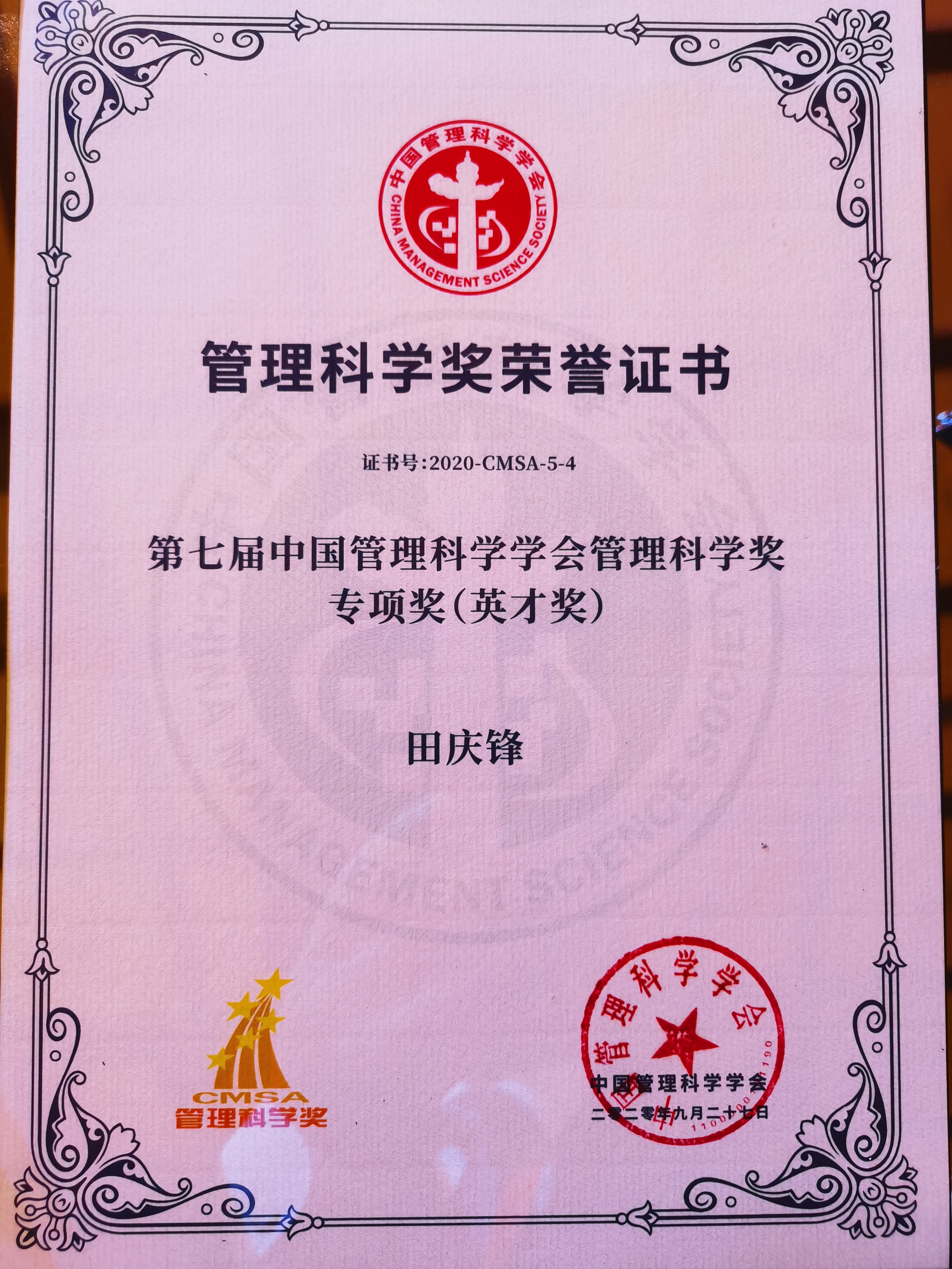 首次获得中国管理科学奖。