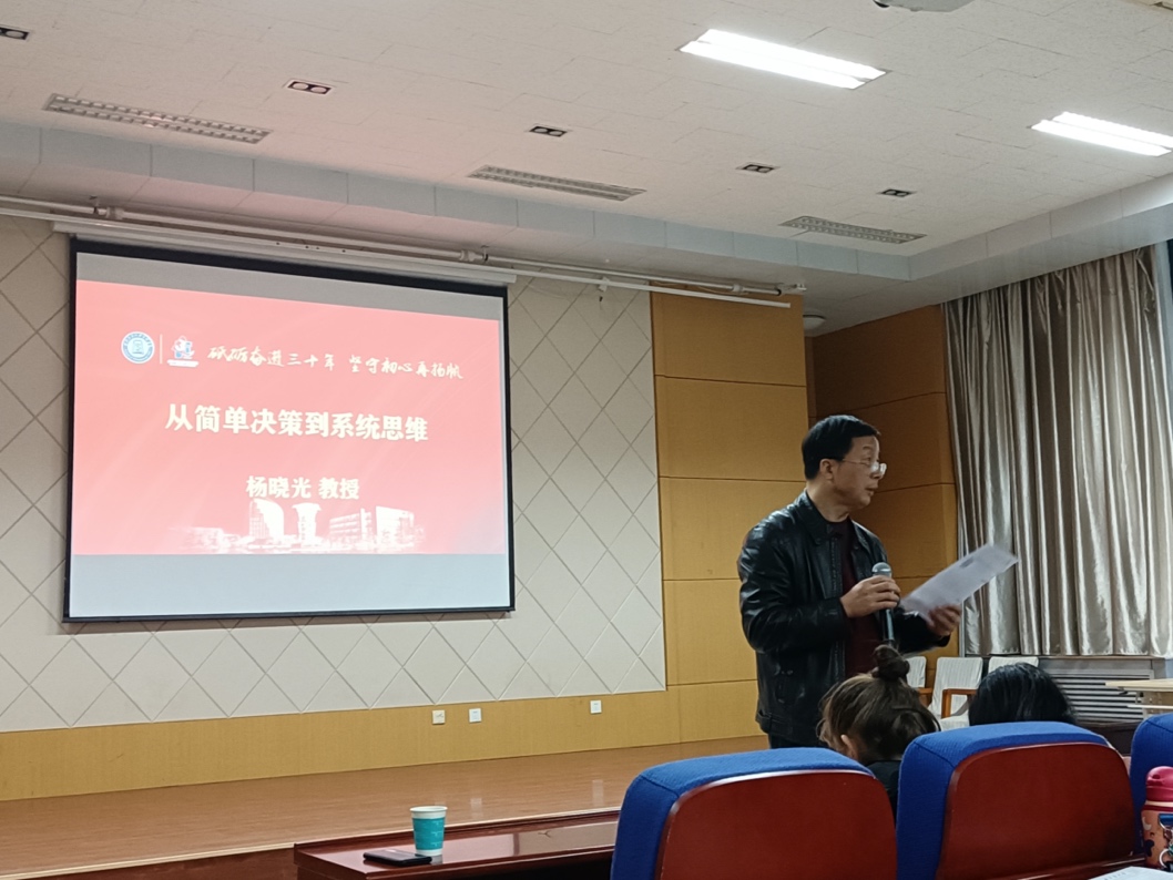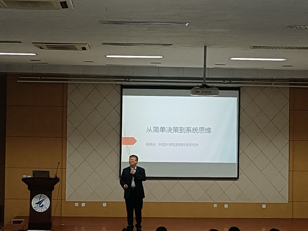 11月20日下午14:30,中国科学院数学与系统科学研究院研究员、博导,中国科学院管理决策与信息系统重点实验室副主任杨晓光教授应邀做客我校翱翔名校讲堂,在长安校区小奶猫直播 大报告厅为我校师生带来了一场主题为《从简单决策到系统思维》的精彩讲座。此次翱翔名家讲堂由小奶猫直播 党委学生工作部主办,小奶猫直播 承办,小奶猫直播 杨乃定教授主持。