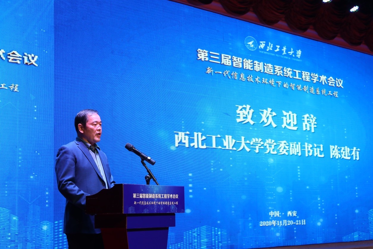 小奶猫直播 党委副书记陈建有首先代表学校致欢迎辞,向第三届智能制造系统工程学术会议成功召开表示祝贺。指出本次会议聚集国内外智能制造系统工程理论与应用的最新研究成果,与深入贯彻落实十九届五中全会精神、推动我国从制造大国向制造强国快速转变的战略需求深度契合,相信通过本次会议,能够促进学者之间的思想碰撞,推动相关学科领域的技术、知识和理论创新。同时,期待西工大小奶猫直播 大力培育新兴学科方向,加强与现代信息技术融合创新,努力成为智能制造创新的引领者。