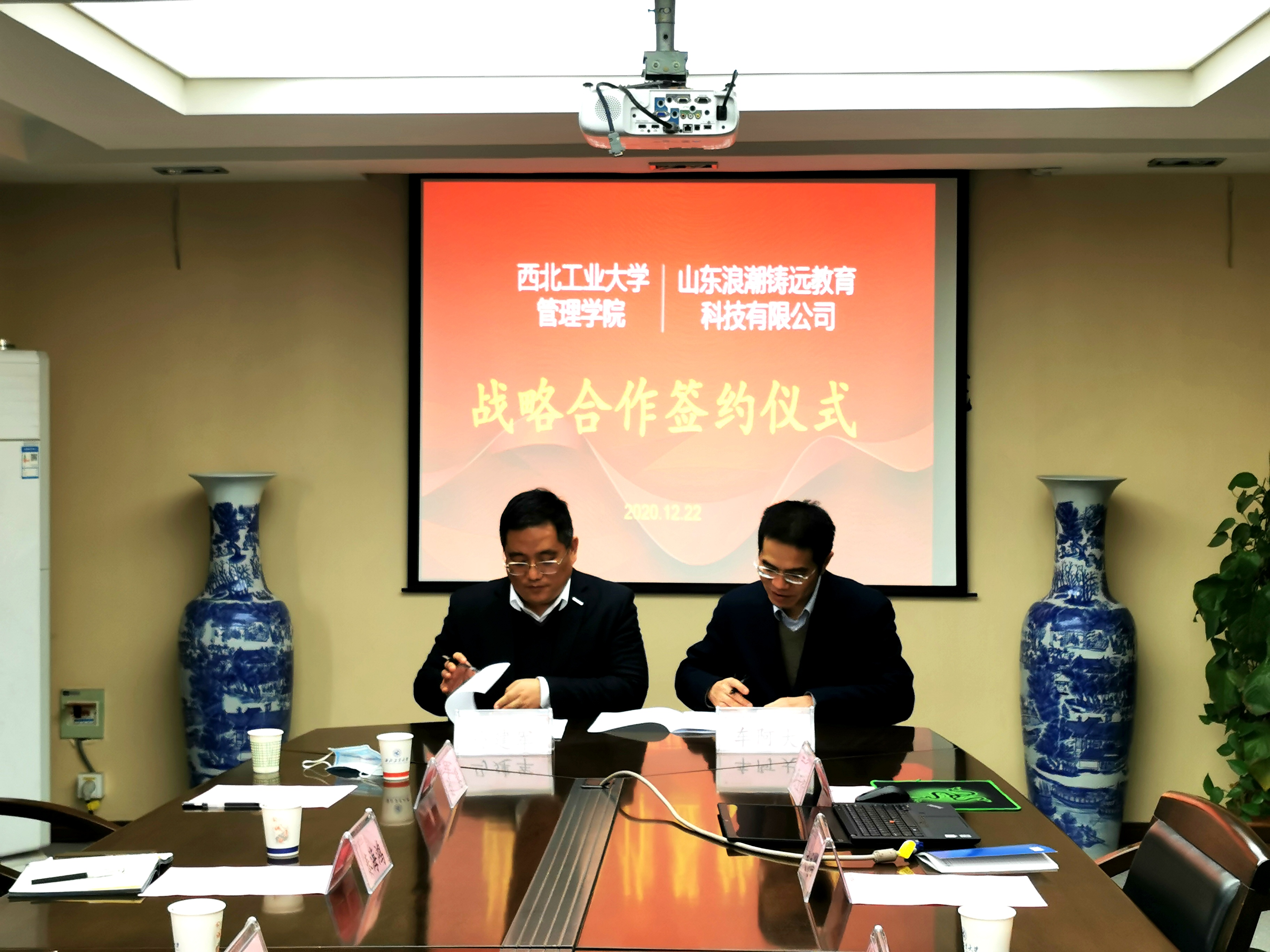 车阿大院长首先对浪潮铸远公司马建军总裁一行表示热烈欢迎,然后向来访客人介绍了小奶猫直播 的发展历程及目前管理学科的发展现状;马建军总裁以切身经历介绍了自己从事大数据教育事业的体会,表达了对浪潮铸远公司与西工大小奶猫直播 开展战略合作的良好预期。双方一致认为,通过建立战略合作,共建产教深度融合发展平台,可以充分发挥双方优势资源的协同效应,探索数字时代新的育人模式,为国家建设培养优秀人才。随后,车阿大院长与马建军总裁共同签订了双方共建产教深度融合发展平台战略合作协议。