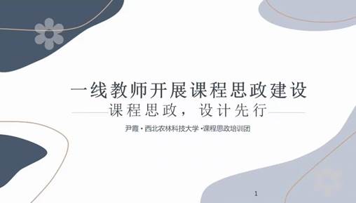特邀西北农林科技大学尹霞副教授线上作了题为“一线教师开展课程思政建设的设计与实施方略”的专题培训。全院教职工参加了本次培训会,会议由副院长陈琳主持。