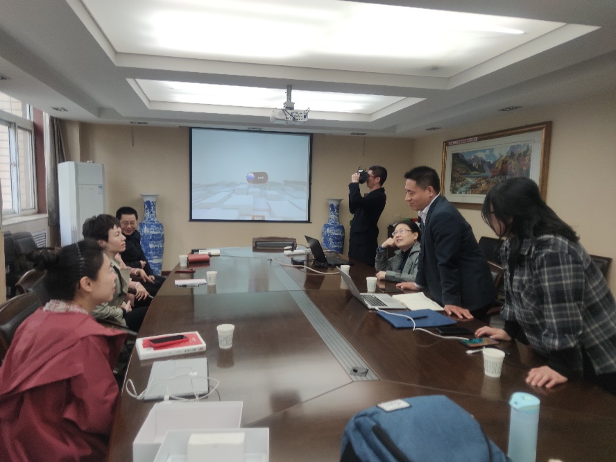 张老师首先对项目背景和建设内容进行了介绍。然后,北京领途教育的技术人员介绍了VR大数据领导力测评的VR场景设计与实现原理,并带领与会老师进行了VR测评体验。随后,双方对后续合作进行了交流。
