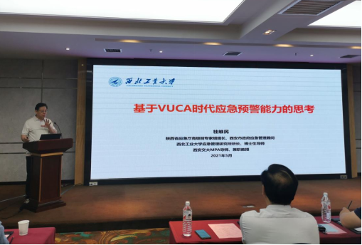 应急管理研究所所长桂维民教授以“基于VUCA时代应急预警能力的思考”为题作大会主旨报告,阐述了VUCA时代下觉知力和反思判断力对应急预警能力的重要性。