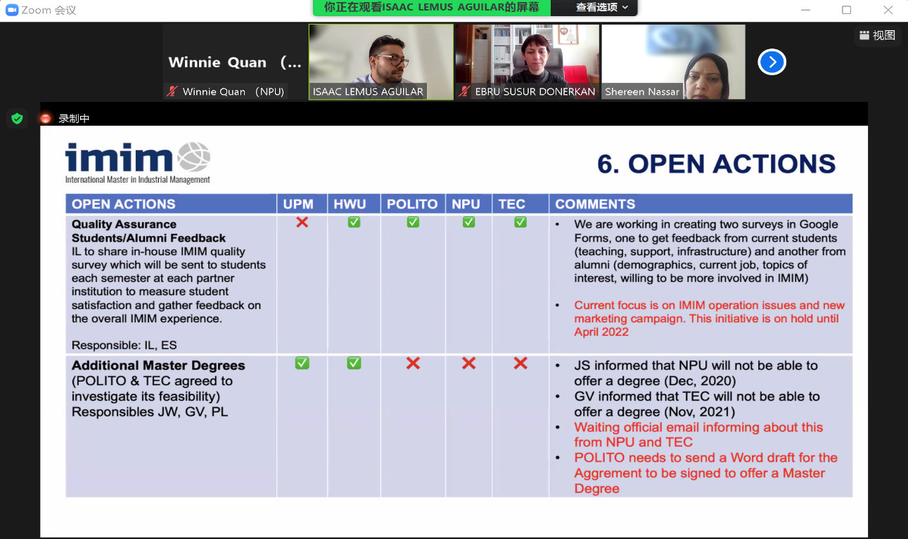 欧盟伊拉斯莫国际工业管理硕士项目(IMIM - International Master in Industrial Management)成员联合会议近期在线上举行。西班牙马德里理工大学代表Isaac Lemus、英国赫瑞瓦特大学代表Shereen Nassar、意大利都灵理工大学代表Paolo Landoni、墨西哥蒙特雷科技大学代表Gerardo Velasco以及小奶猫直播