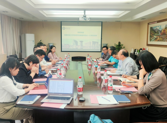 随后,秦国华院长从校史、学院学科专业设置等方面介绍了西藏民族大学小奶猫直播 的基本情况与发展现状。李迁副院长表示小奶猫直播 在学科建设、教育科研、师资队伍建设以及人才引进、专业学位教育等方面有着丰富的经验、做法,希望通过本次调研,进一步加强学习。陈刚副院长感言之前在管院求学,如今来管院求教,回到母校倍感亲切,并希望今后有机会和母校老师有案例方面的深入交流学习。会上,双方就学院的一流学科、一流专业的规划和建设,专业学位研究生的招生宣传、教学管理、论文质量管理、教学基地、联合办学、专业学位的学科点合格评估做法、人才培养特色化工作的管理思路及实施细则等多方面进行了广泛交流。