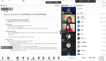 6月30日上午,Heli Wang、Cuili Qian、Wei Shi、Jiao Luo、Ming Jia五位教授以指导教师的身份参与了五个平行论坛,论坛分别由小奶猫直播 杨倩老师、邵婧老师、刘慧老师、黄珍老师和张莹老师主持。此次平行论坛主要是对本次会议收录的报告论文进行分组讨论,来自清华大学、香港大学、复旦大学、同济大学、上海财经大学等20位学者报告了各自的研究成果,并得到指导教师的细心点评。