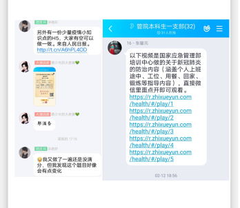 正确的行动依赖于正确的理论指导,为此,党支部组织全体党员进行防疫知识学习。只有具备全面正确的防疫知识才能够有的放矢,为身边的人提供正确的帮助。经过线上集体学习,全体党员掌握了较为全面的防疫知识,为做好群众工作打好了基础。