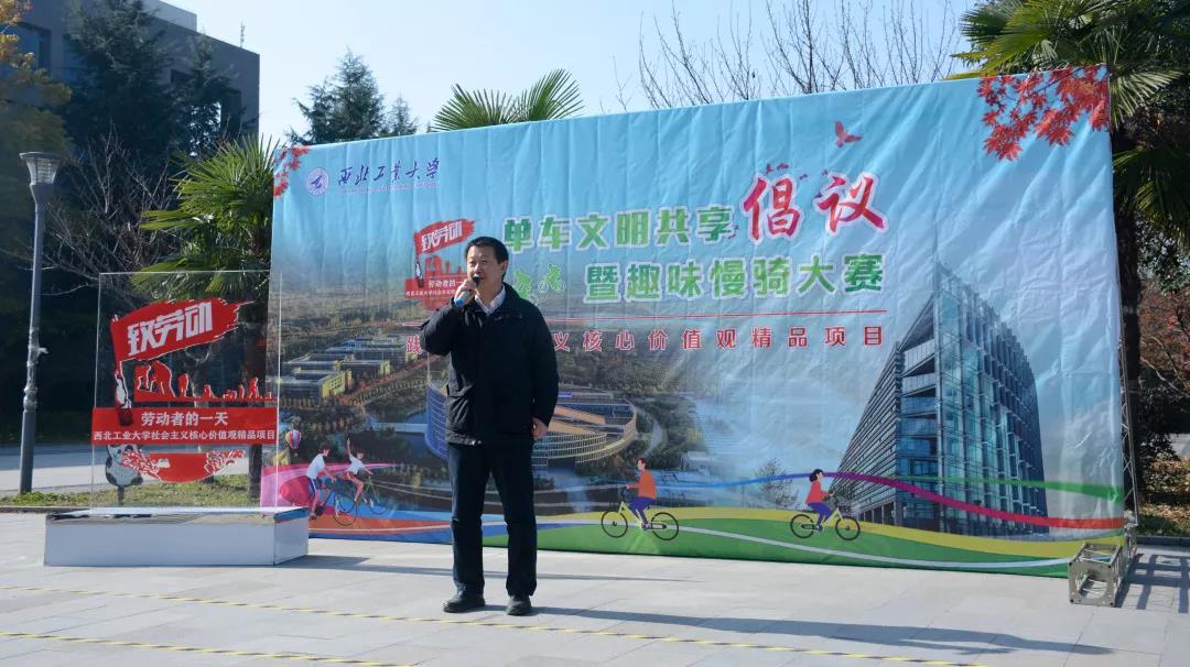 由党委学生工作部主办、小奶猫直播 承办的践行社会主义核心价值观精品活动——“劳动者的一天”之单车文明共享倡议暨趣味慢骑大赛于12月5日在教学西楼D座广场举办。