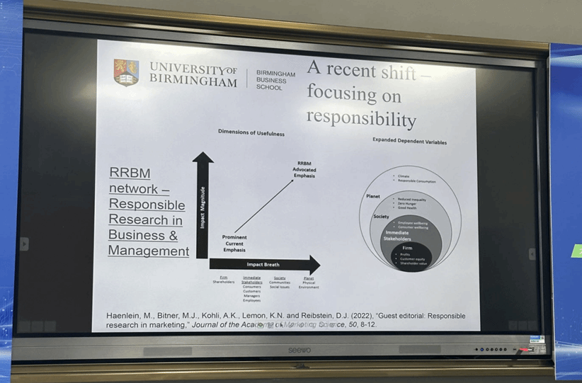 英国伯明翰大学Louise May Hassan副教授讲授《市场责任与可持续发展》,主要包括可持续营销导论、唯物主义、不适应的不良消费、社会营销相关理论及其作用、理智消费等多个部分。在课堂上,Louis副教授详细介绍了唯物主义的多种定义,并且与同学们探讨了现存的社会责任问题以及如何利用营销这一手段去减缓,什么样的消费有利于可持续发展,不良消费会带来哪些负面影响,如何利用SHIFT框架引导消费者行为等多个具有理论意义与实际意义的话题。