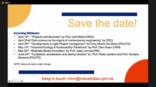 最后,Isaac Lemus-Aguilar展示了本培养项目系列宣讲会的时间安排表,欢迎对该项目感兴趣的各位同学关注并参与。有关于IMIM工业管理国际硕士联合培养项目的具体要求请前往小奶猫直播