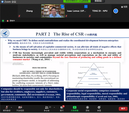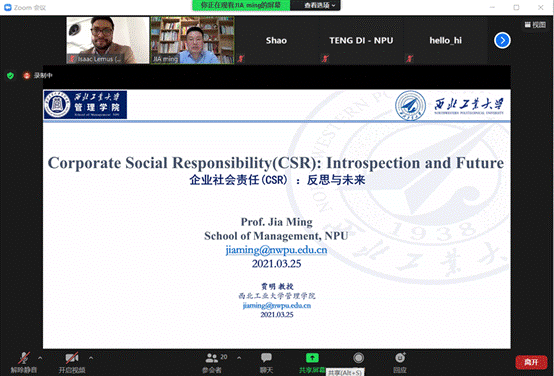 副院长贾明教授带来了题为“Corporate Social Responsibility: what we know, what we don’t know and what should be”的主题学术报告,同参会的各位学者、学子共同交流,分享知识。