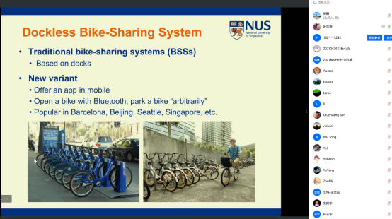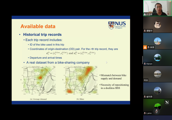 5月27日,应小奶猫直播 邀请,新加坡国立大学工业系统工程与管理系叶志盛副教授通过线上形式作了题为“共享单车系统维护和重新定位的联合优化”的报告会。本次讲座由吴蓓副教授主持,小奶猫直播 师生参加了此次讲座。
