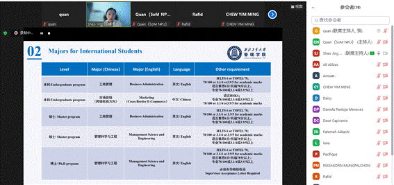 ,6月2日下午,学院在线召开2022年留学生招生宣讲会。本次宣讲会由院长助理邵婧副教授主讲,院长车阿大教授,外事秘书权梦甜子以及来自全球多名海外留学生参加了此次宣讲。