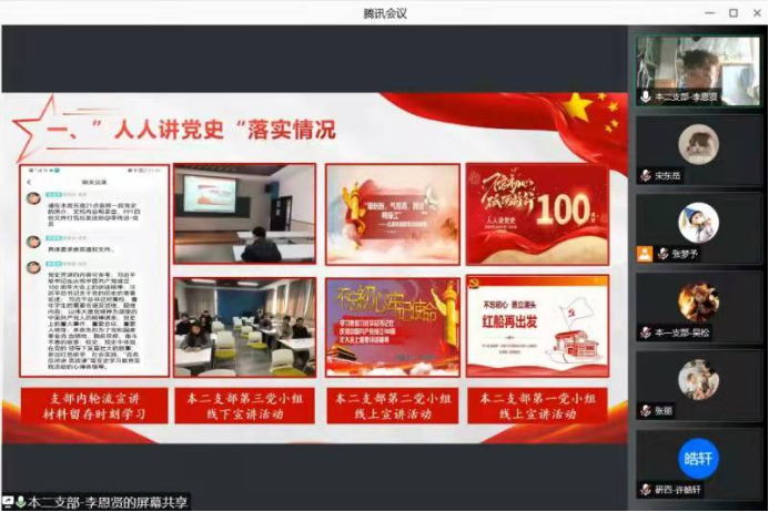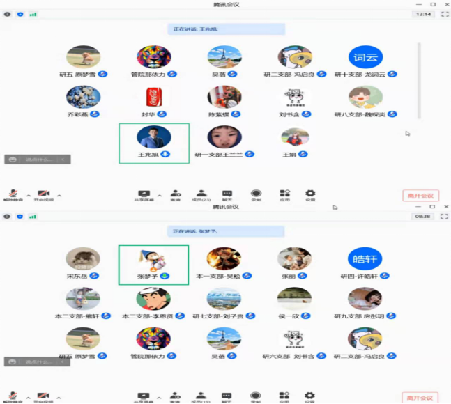接下来,12个支部的学生党支部书记结合本支部具体情况,详细汇报了本年度党支部工作的各个方面,包括支部的基本情况,党员发展情况,三会一课开展情况,党史学习教育、百岗千人等特色活动开展情况等等。此外,各支部还针对本年度工作开展过程中暴露的问题进行了分析,给出了今后工作的改进方向,制订了有效的整改措施。