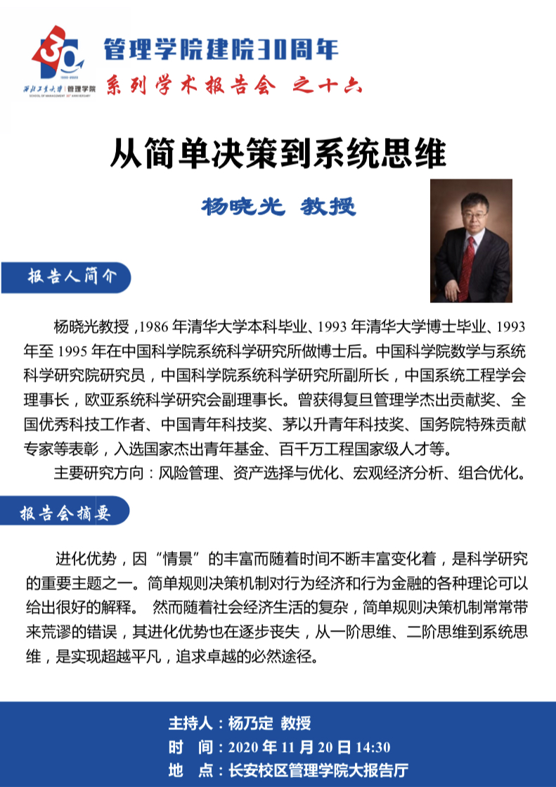 下一条:【小奶猫直播 建院30周年系列学术报告会之十五】竞合供应链中的技术依存和生产时序决策研究