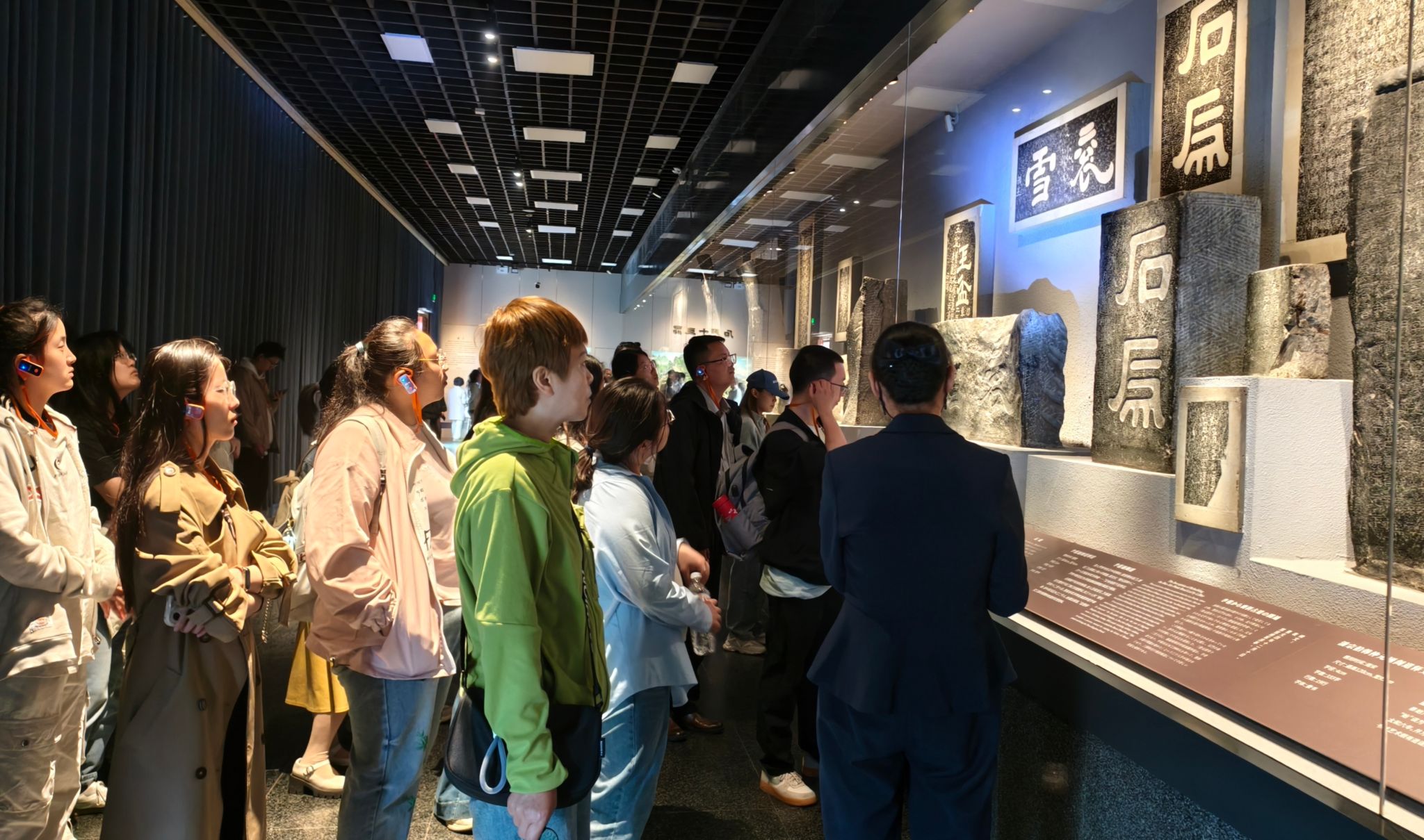 在汉中市博物馆,同学们沿着习近平总书记的足迹,感知文化源头之所系、文明力量之所在、文脉传承之所依。博物馆内,望江楼、石鼓亭等古建筑古朴典雅,承载着岁月的痕迹;“石门十三品”“褒斜古栈道”等陈列室更是以其独特的历史价值和文化魅力吸引着同学们的目光。在参观过程中,同学们深刻感受到中华优秀传统文化的博大精深,也对文化强国理念有了更深刻的理解。