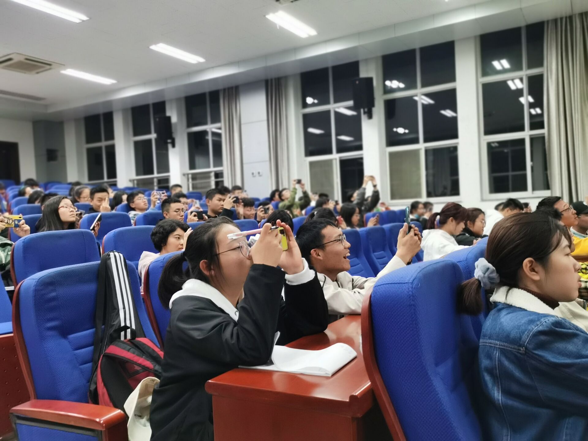 2020年10月18日下午8点,数学与统计学院辅导员戴卓老师在力土与管院中间的报告厅为小奶猫直播