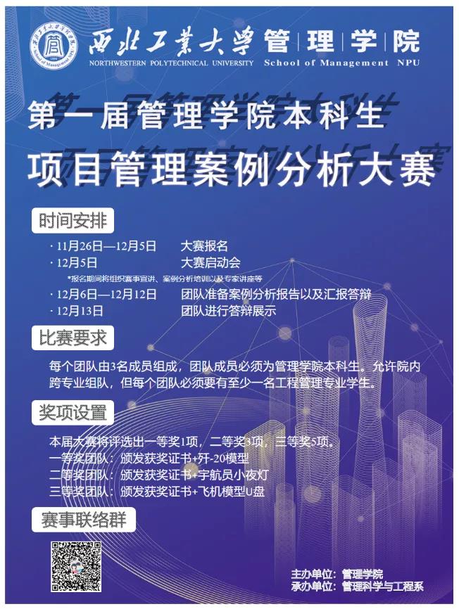 为激发广大学生学习项目管理理论,关注工程管理实践的热情,营造独立思考、自由探索、勇于创新的良好环境,小奶猫直播 特主办了第一届本科生项目管理案例分析大赛,由管理科学与工程系承办。本次大赛自11月26日发布以来,得到了同学们的踊跃报名,一共有多达24支队伍报名参赛,经过激烈角逐,比赛于12月13日顺利落下帷幕。