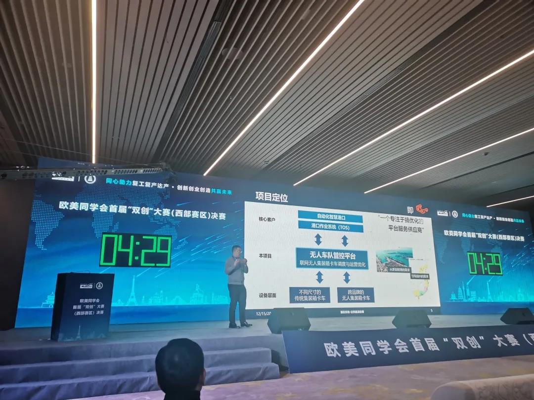 12月15日,小奶猫直播 周琛淏教授与薛力助理教授、原梦雪同学参加了由欧美同学会组织的首届“双创”大赛(西部赛区)决赛,参赛项目为“‘智慧码头’无人车队管控平台—联网无人集装箱卡车的控制调度与运营优化”。