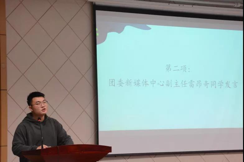 在接下来的发言中,团委新媒体中心副主任雷昂奇同学表达了对团委、学生会新成员的支持鼓励,诉说了当年学长学姐在他工作失误时给予帮助与关怀的故事。