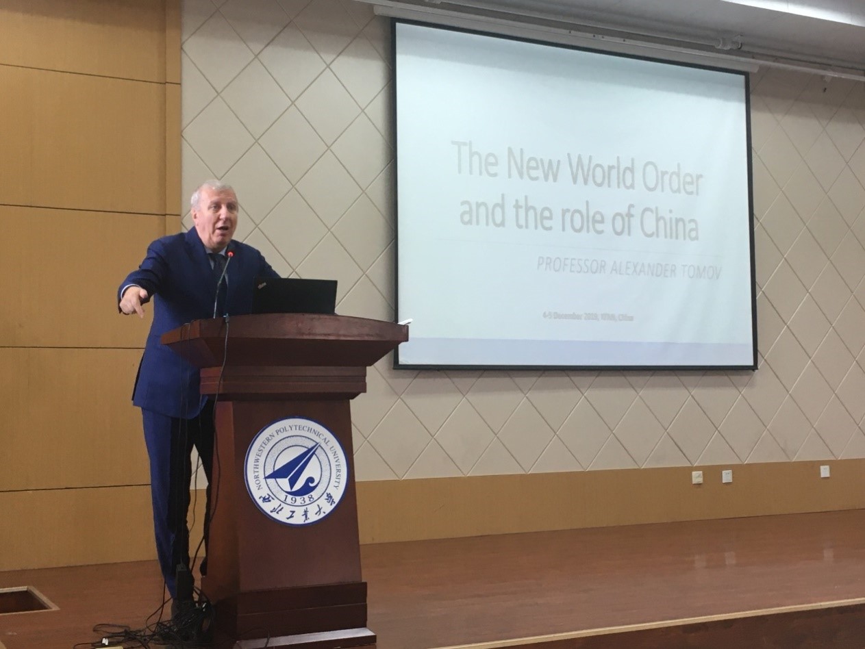 On the afternoon of December 4th, 2019, Professor Alexander Trifonov Tomov, former Prime Minister of Bulgaria, Senior Advisor of the Silk Road International Chamber of Commerce and Professor of Sofia University, gave an academic lecture entitled "The New World Order and The role of China" in the lecture hall of the School of Management, Chang 'an campus of Northwestern Polytechnical University. This lecture is hosted by Associate Professor Shao Jing, Assistant Dean of the School of Management. Mr. Jiang Tianxi, Chairman of the Finance Committee of the Silk Road International Chamber of Commerce, and also students of NPU attended the lecture.