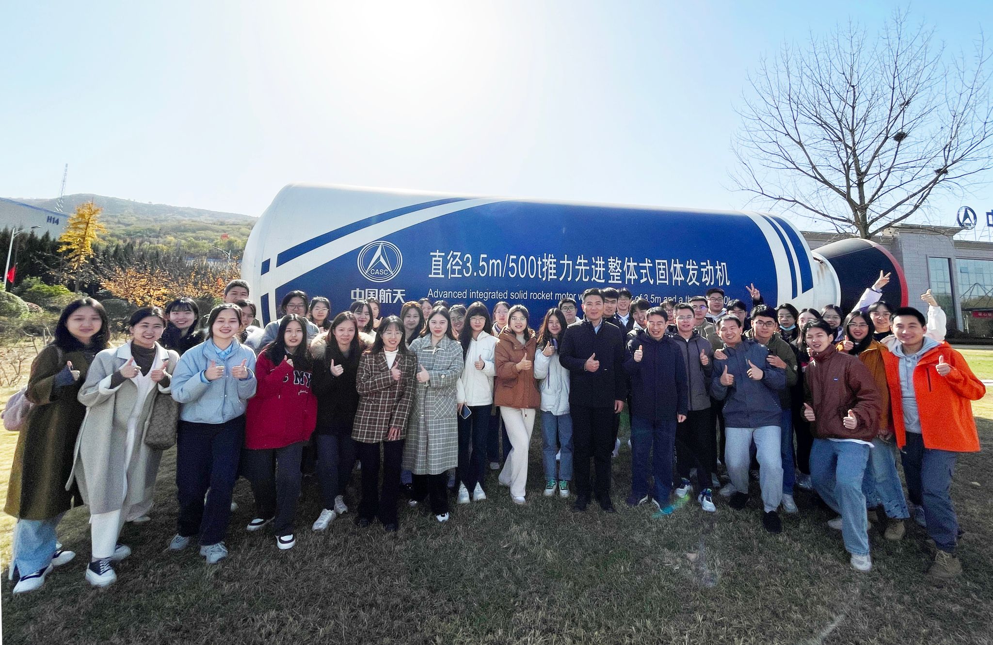 随后大家前往西安航天动力机械有限公司(7414厂)和西安航天动力测控技术研究所(401所)进行参观。7414厂下属单位——西安航天新能源装备科技有限公司党支部书记王建锋和401所人力资源处处长王俊景热情接待并陪同参观。学生们分别了解了固体火箭发动机金属壳体、喷管金属件的研制和生产以及固体火箭发动机试验、专用仪器仪表研制、精密结构件加工等。航天领域的每一次突破,是中国科技进步的缩影。大家纷纷感叹中国航天事业发展的迅速,不仅推动人类更好地探索宇宙、开拓视野、实现梦想,而且带来了诸多技术、能源、产业上的利益,已经成为引领科技创新和社会发展的重要力量。