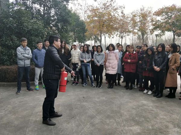全体人员在各楼层安全信息员的指挥下,迅速进入紧急疏散状态:全体师生用湿毛巾、衣服等捂住口鼻有序撤出教研室;按照消防标示确定疏散的方向,按照逃生演练方案设定的逃生路线,全体师生迅速而有序地撤离到安全地带,没有出现拥挤、踩踏等安全事故。随后,保卫处的郑活勃老师针对本次演练中存在的问题进行了讲解,随后又介绍了消防安全常识、火灾预防措施,以及灭火器材的使用、保养方法,要求学院严格按照有关规定,落实消防安全责任,做好各类防火巡查、检查工作,定期检测、清洗、更换各类消防器材和设施,确保关键时刻拉得出、冲得上,同时手把手教师生们如何使用灭火器材以及如何在火场中逃生自救等相关常识,示范了灭火器的使用及扑救火灾的消防演练,在场师生也都尝试了如何使用灭火器。