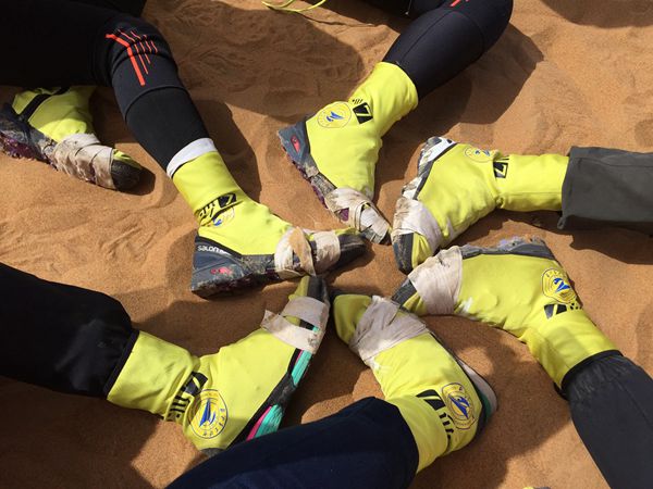 漫天风沙,烈日骄阳,三天负重穿越沙漠70公里,考验的不单单是参赛队员的体力,更是意志力与团队合作的默契。在艰苦环境下坚持信念,挑战自我,让亚沙赛成为一个重新认识自己的开始。全体队员在队长宋超的带领下,经历高温、低温、小雨、沙尘暴等恶劣气候,连续三天熬战,积极拼搏,虽憾失沙鸥奖杯,但西工大每一位勇士的足迹深深地印在了亚沙赛场上。