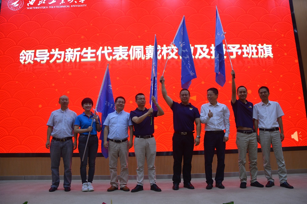 2018级MBA1203班韩勇、2018级MEM1202班廖阔、2018级EMBA班代敏及2018级MBA1204班陈文佩4名新生代表分别发言,表示要努力学习,提高自己,不辜负在校学习、与同学们相处的美好时光。在隆重的授旗仪式中,车阿大院长、郭云涛副院长、韩建新副院长以及肖平主任分别为4名新生代表佩戴校徽并授予班旗,同学们心中的油然而生。新生代表韩勇同学带领全体新生的宣誓,更加深了西工大学子的信念。