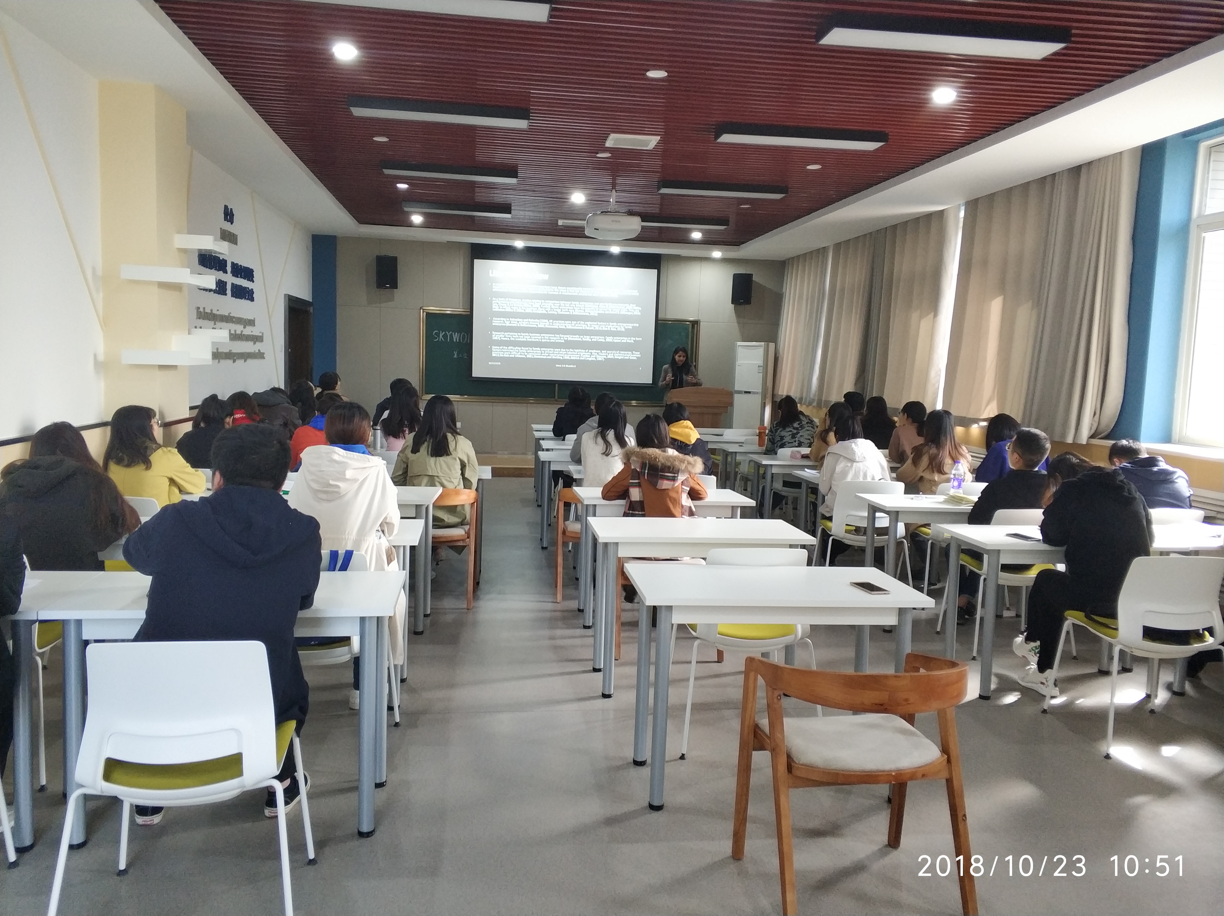 214室为学院师生作了学术报告。报告会由许燕副教授主持,研究生以及留学生30余人参加了报告会。